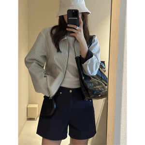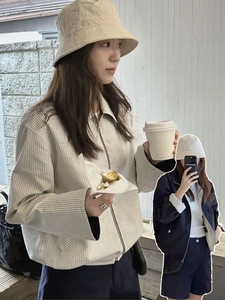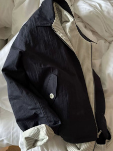 现货 双面穿条纹翻领夹克女2025春季韩东大门休闲宽松双面外套g*d