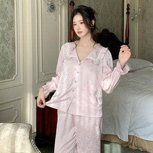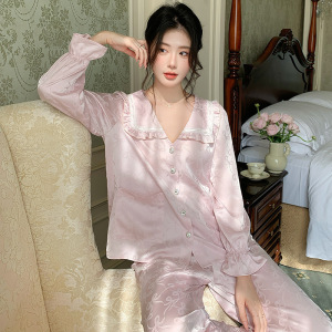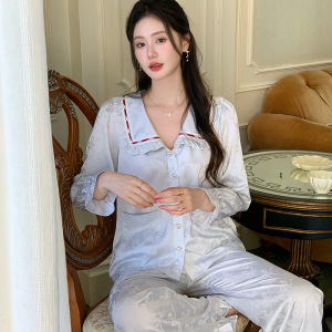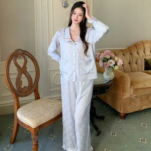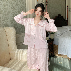 法式复古宫廷风色丁睡衣女士秋冬新款长袖款套装高贵气质家居服