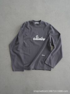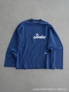 秋季新款字母刺绣圆领宽松长袖T恤时尚百搭男女款极简潮流情侣款
