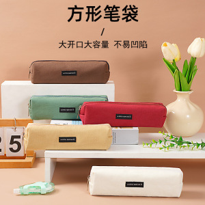帆布笔袋简约立体大容量高中学生文具袋纯色铅笔袋学生文具收纳袋