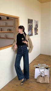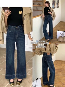5837秋季新款高弹水洗软牛仔直筒牛仔裤女显瘦垂感九分直筒奶奶裤
