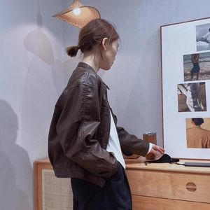 咖色皮衣2025早春新款小个子短款立领小香风夹克外套女春秋款