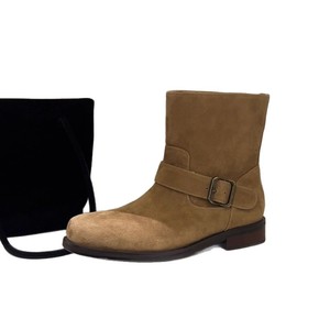 韩版2025秋冬新款宽筒皮带扣平底短筒靴软皮复古中筒靴踝靴短靴女