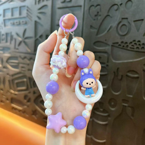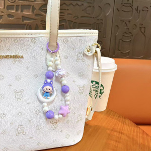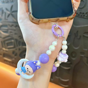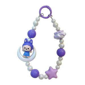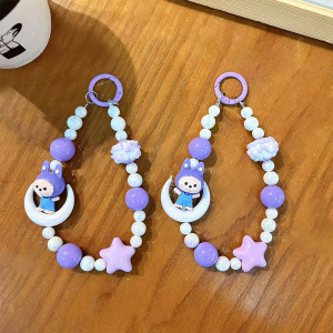 创意小兔子月亮串珠手机链钥匙扣可爱包包挂件汽车钥匙链礼品批发