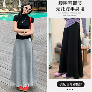 现货孕妇慵懒风垂坠感半身裙早秋季2025新款韩系高腰显瘦a字长裙