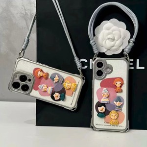 颜料色块小人偶公仔适用苹果17/16手机壳电镀贴皮挂绳小米15华为