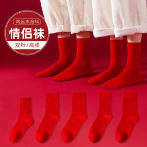诸暨新年大红袜子纯色中筒袜情侣袜高筒男女鸿运袜子棉袜