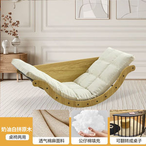 /米白棉麻布/+胡桃木架【沙发桌子两用】