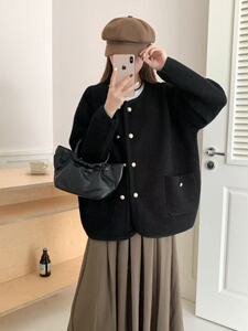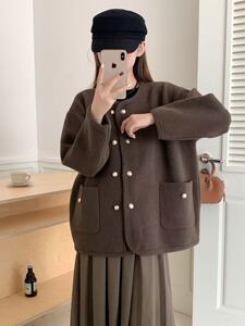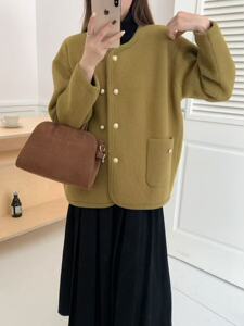 实拍法式橄榄绿小香风外套女2025秋冬新款气质名媛针织衫小众上衣
