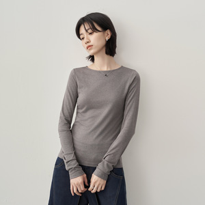 醋酸天丝一字领长袖t恤女莱赛尔轻薄透气修身内搭外穿打底衫上衣