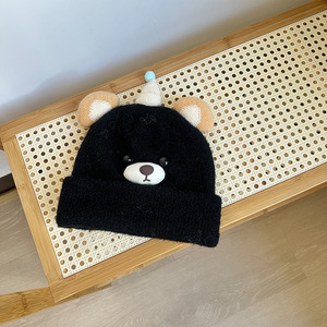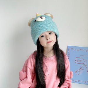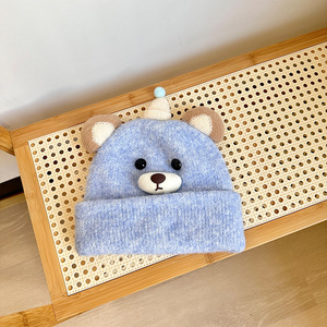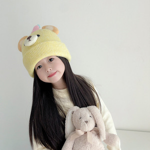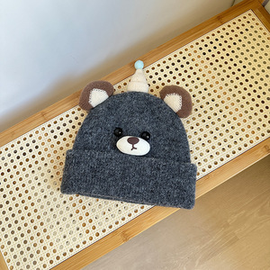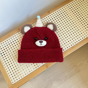 韩版可爱蛋糕熊卷边毛线帽生日小熊儿童针织帽秋冬季儿童保暖帽子