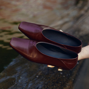 马油牛皮单鞋女鞋2025年秋季新款简约方头低跟浅口一脚蹬小皮鞋女