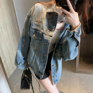 mm家25ss秋冬新款水洗做旧牛仔外套时尚百搭