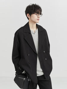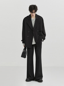 春秋季短款双排扣风衣男小众设计感西装领外套纯色休闲韩版风衣男