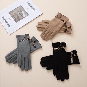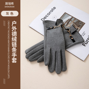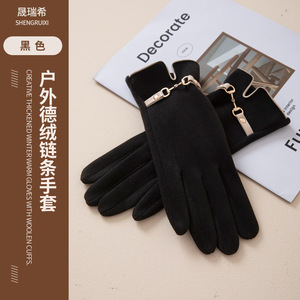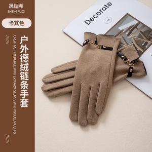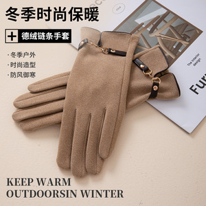 德绒链条手套秋冬季保暖女学生韩版加绒加厚冬天户外触屏防冻防寒