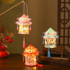 2025新款中秋节灯笼儿童手工diy制作材料包投影宫灯发光花灯