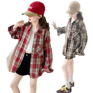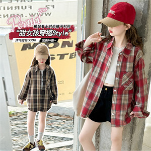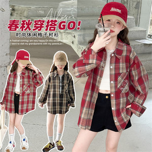 女童秋装休闲格子衬衣中大童春秋新款拼色格纹学院风长袖外搭上衣