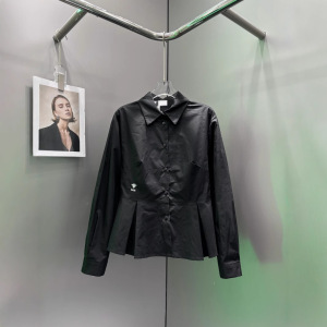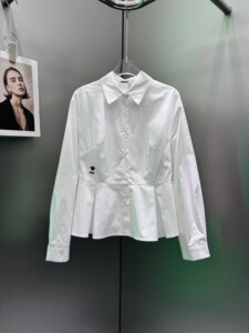 25春夏新款 简约小蜜蜂刺绣翻领收腰褶皱花边衬衣女款