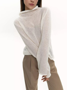 2025跨境新品乌龟领针织长袖上衣|宽松慵懒|卷边镂空设计