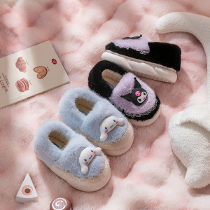 正版三丽鸥秋冬儿童棉拖鞋女童可爱亲子卡通室内家居防滑保暖棉鞋