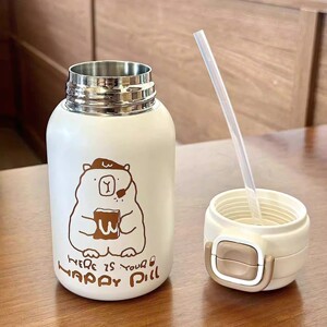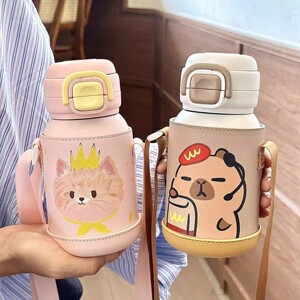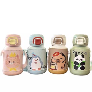 儿童保温杯卡通双饮便携背带水杯学生上学专用高颜值男女吸管杯子