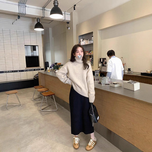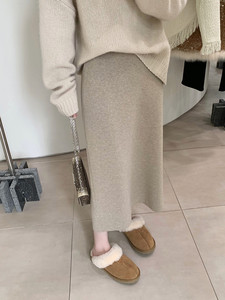 高级感软糯羊毛针织半身裙女秋冬季中长款直筒包臀裙高腰a字裙子