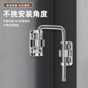 免打孔不锈钢卡扣插销门栓90度直角门扣锁木门防盗锁门搭厕所锁扣
