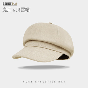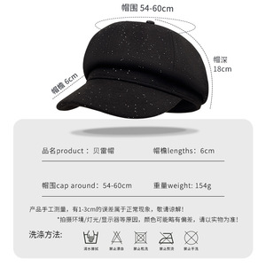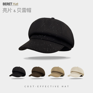 韩版亮片毛呢八角帽子女秋季文艺复古显脸小画家报童帽鸭舌贝雷帽