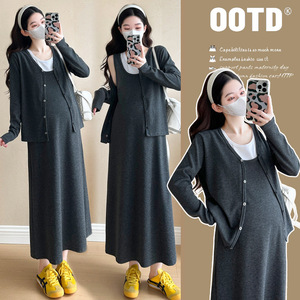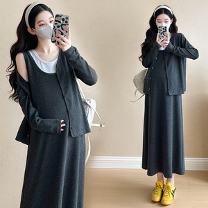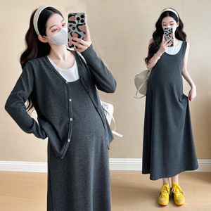 孕妇秋装新款时尚大码慵懒风潮妈连衣裙两件套