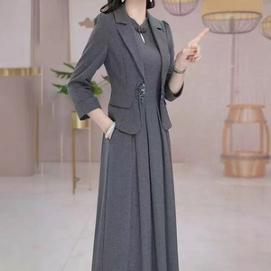 高级感优雅套装女秋季长袖西装外套连衣裙收腰显瘦两件套气质女装