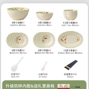 草莓庄园8人食39件套汤碗配置可微波炉洗碗机