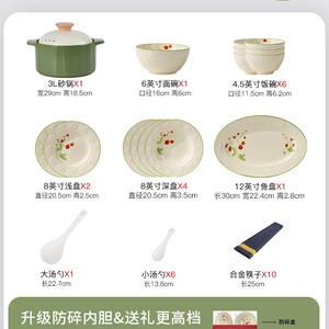 草莓庄园6人食32件套明火砂锅配置可微波炉洗碗机