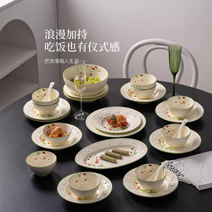 草莓庄园12人食62件套汤碗配置可微波炉洗碗机