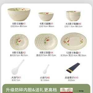 草莓庄园6人食32件套汤碗配置可微波炉洗碗机