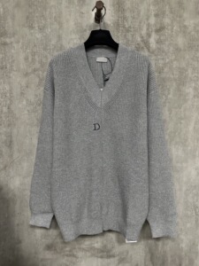 高版本D家25早秋新款胸前字母LOGO刺绣V领毛衣宽松百搭男女同款