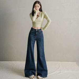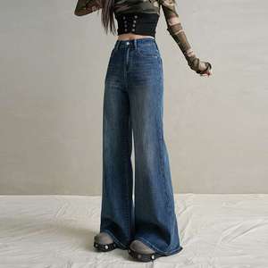 包邮不贴腿微喇牛仔裤女春秋高腰显瘦爆款阔腿小个子喇叭裤代发