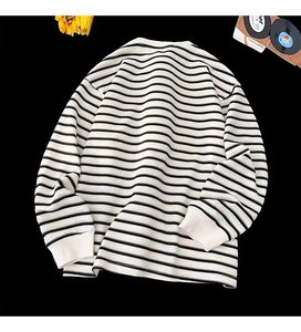 黑白条纹长袖T恤男款秋季潮牌美式高街重磅正肩卫衣帅气打底衫潮