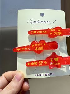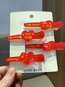 国庆五星红旗尖嘴夹女孩节日装扮侧边刘海夹爱心中国风百搭女发夹