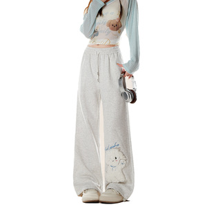 自然涩可爱小狗休闲卫裤女2025春秋季新款百搭直筒宽松运动裤子潮