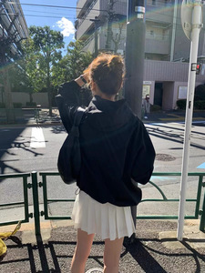 现 2025秋季新款韩版OU*CE气质纯色宽松休闲显瘦连帽拉链夹克外套