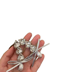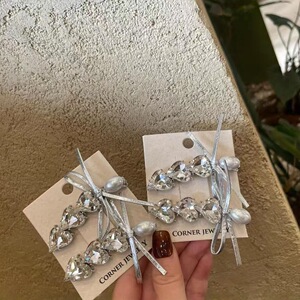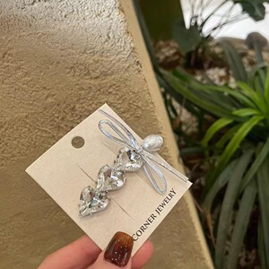 韩国饰品2025新款高级感爱心水晶鸭嘴发夹亮银蝴蝶结碎发侧边夹