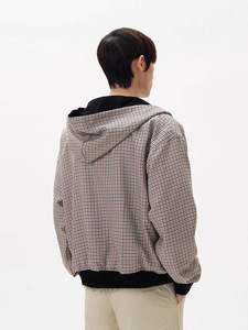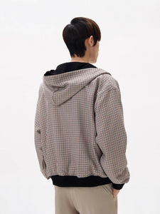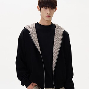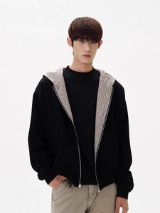 美式高街复古千鸟格双面穿卫衣男女秋季潮牌宽松百搭休闲连帽外套