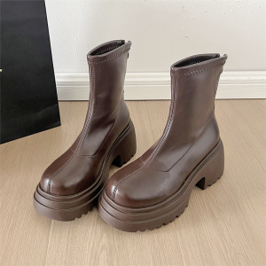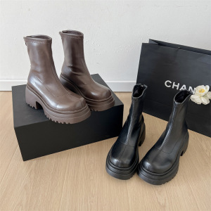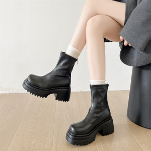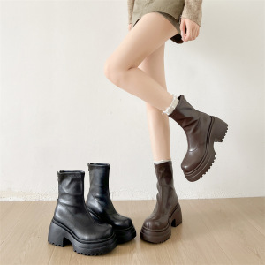 英伦风小个子黑色厚底西部牛仔靴子女2025新款秋季复古粗跟马丁靴