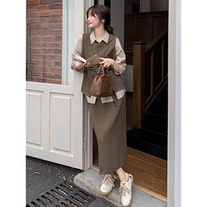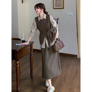 穿搭高级感套装女春秋2025西装马甲半身裙韩系整套穿搭轻熟三件套