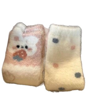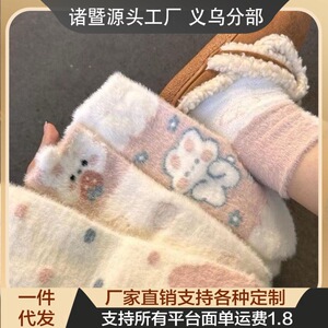秋季款节厚实水貂绒保暖袜子女卡通可爱小兔子居家地板袜睡眠袜子