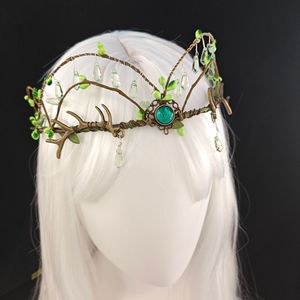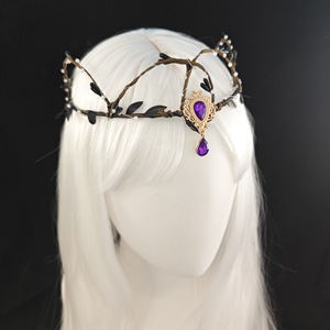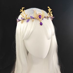 跨境巴洛克自然精灵头饰森系金色竹叶眉心吊花环发带跨境爆款