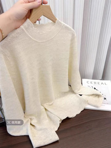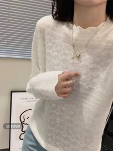 2025春季韩系蕾丝提花边针织衫女时尚洋气百搭打底衫长袖薄款上衣
