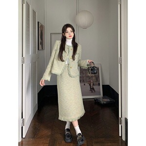 气质名媛小香风套装裙春春秋新款高级感温柔韩剧外套半身裙两件套