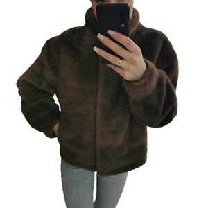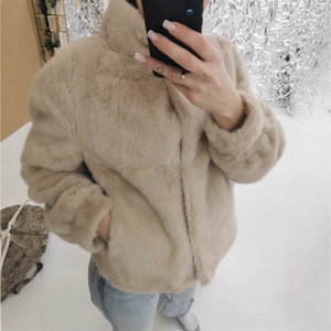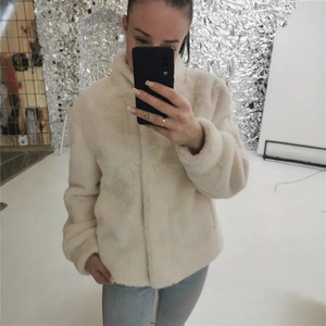 跨境立领毛绒外套欧美2025秋冬新款暗扣毛毛外套保暖仿貂绒开衫女