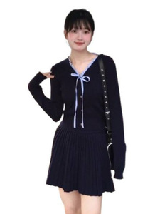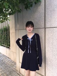 针织连衣裙女秋冬季新款减龄小个子学院风长袖开衫半身裙两件套